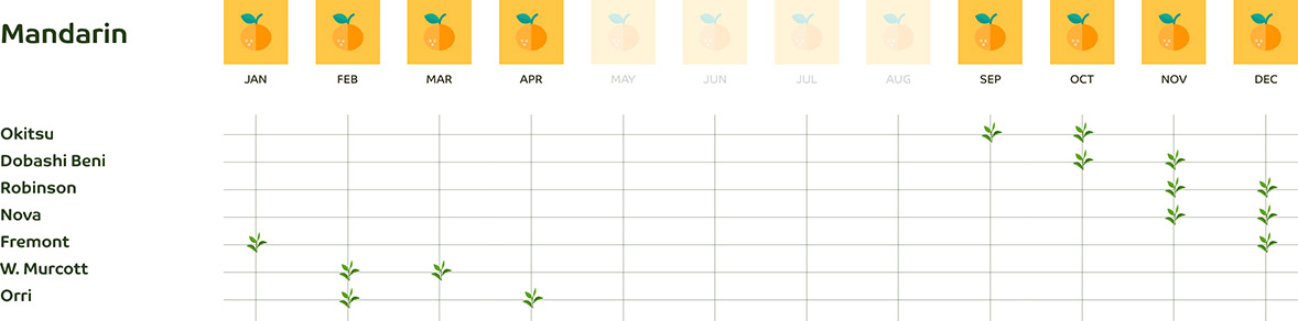 Mandarins are harvested mostly during the winter season and canned mandarins are available throughout the year. Mandarin oranges are used in salads and can be eaten raw too. The fruit is sweet and juicy and provides flavour to candies, bubble gums and ice cream. Mandarin peels contain essential oils that are used in the perfume industry and skin care preparations.
